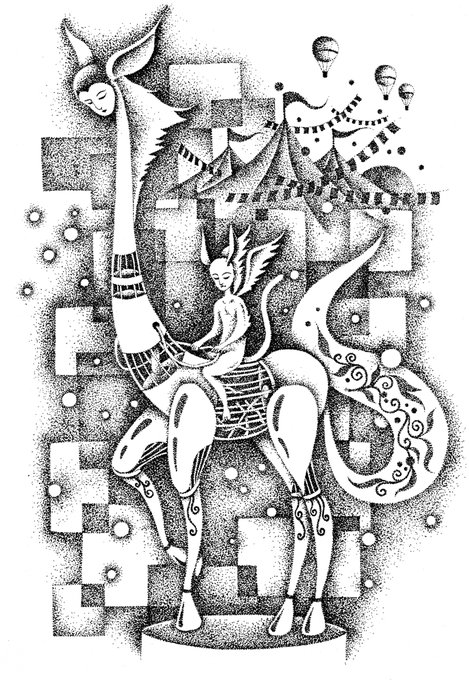 妖精のサーカス #サーカス #曲馬 #妖精 #馬 #テント #気球 #童話 #幻想 #ファンタジー #ペン画 pixiv.net/artworks/95856…