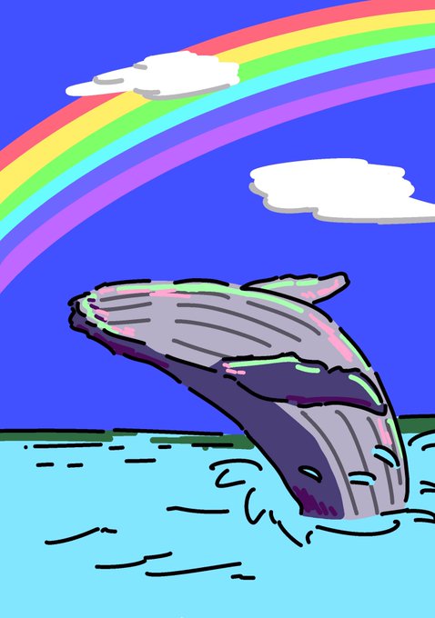 0 10 虹とくじら 前に描いたイラストです #イラスト #オリジナルイラスト #風景画 #クジラ #虹 22/07/14 21:52