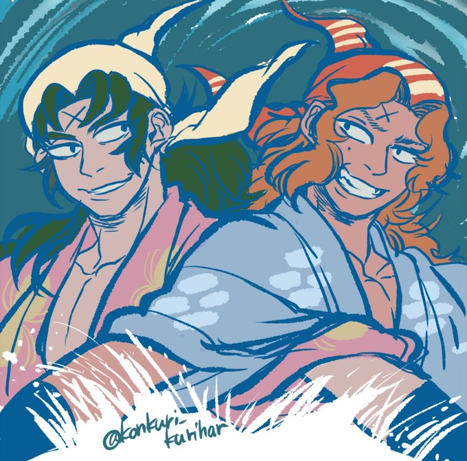 5 22 #海の日だからTLに兵庫水軍を流そうぜ祭 素敵タグお借りしました〜パート2‼ 過去絵発掘してきた‼ 可愛く描けた網問と成長し過ぎた間切 23/07/17 19:07