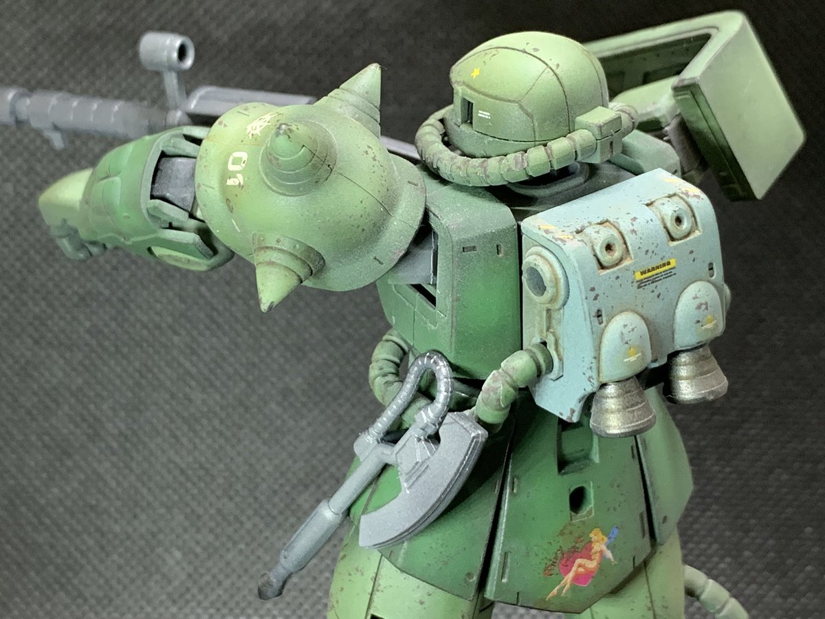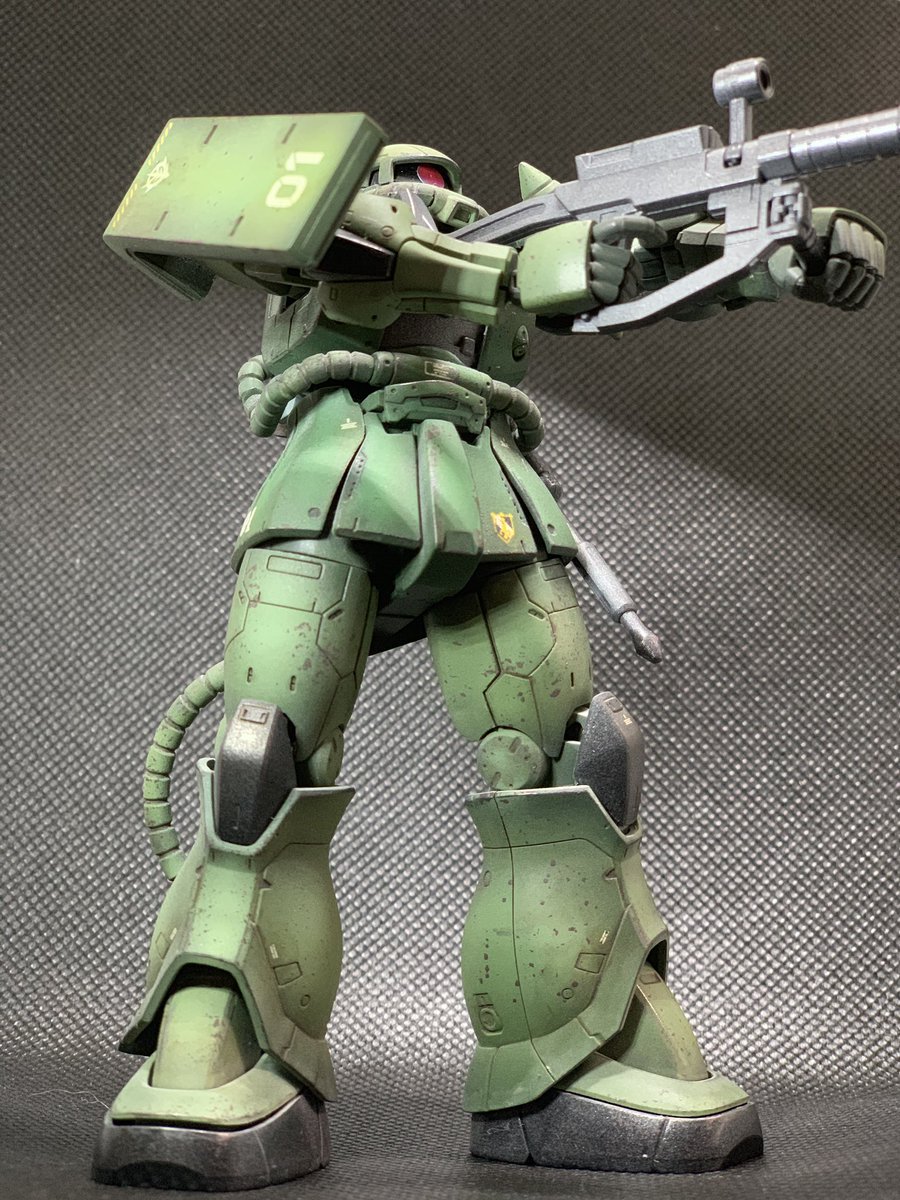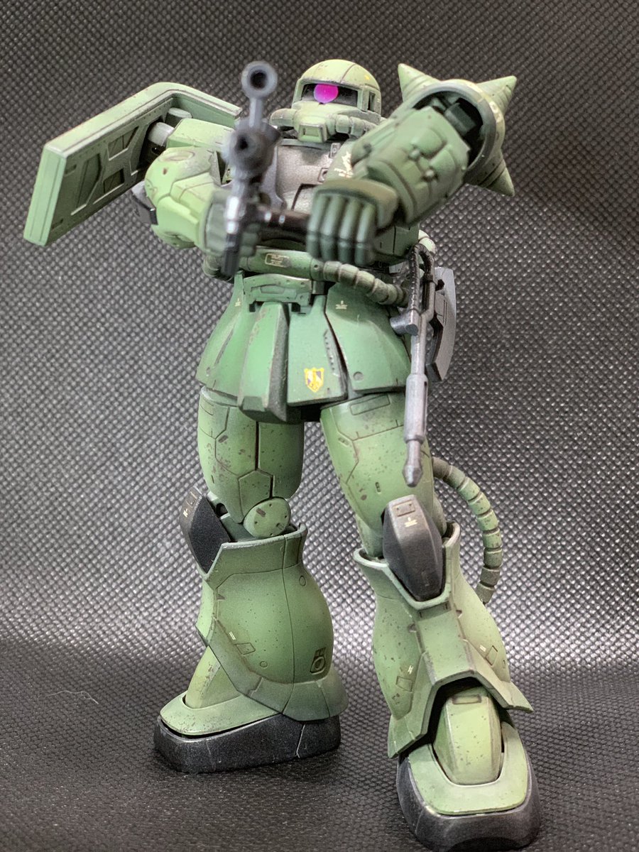 4 17 ジ・オリジン ザクⅡC型 完成しました。 ウェザリングマスターで埃・泥・退色とシャドウを追加。 クレオスなめらかスムースで艶消しにして最後は鉛筆で金属光沢を出して仕上げました。 HGでは一番良いプロポーションのザクではないでしょうか。 #ガンプラ #ザク 19/08/13 00:28