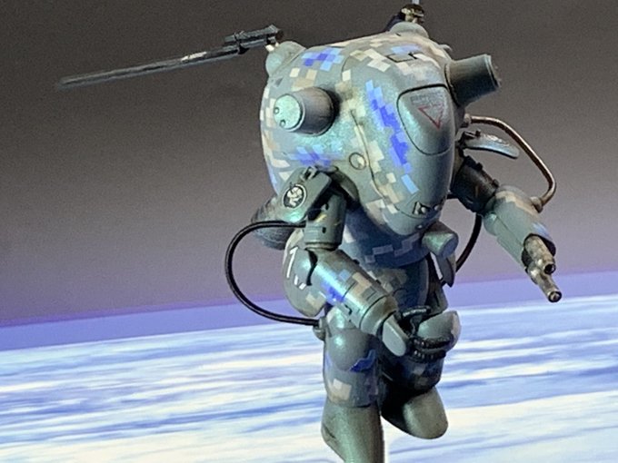 6 47 Ma.k ガチャーネン フリーゲ パイピングをスプリング線に換えて完成です バックを大気圏の壁紙にして撮ってみました #マシーネン #ガチャーネン 20/07/14 00:42