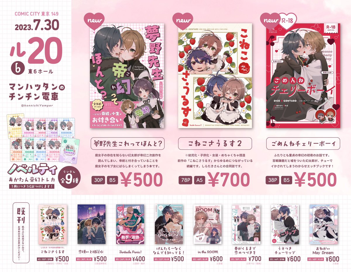 【7/30 CLB29】おしながき【帝幻】 | いぬのぼり ちやほ #pixiv pixiv.net/artworks/11017… ありゆめのお品書きです! 新しいものは新刊3種類と、ノベルティのランダムトレカです😸 よろしくお願いします💕