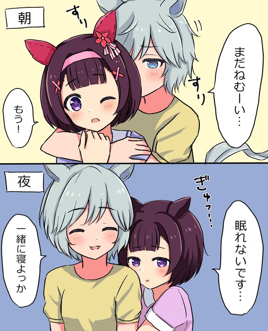 332 1376 #百合の日 #ウマ娘 今日は百合の日なので仲良く眠るフラウンスをどうぞ。寝言でドキドキしちゃうセイちゃんとすやすやフラワーちゃん☁️🌼 23/06/25 00:28