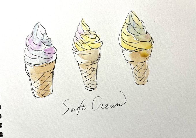 久しぶりのTwitter更新です。かわいい食べ物を描くシリーズ。ipadでソフトクリーム描いてみました。サラリと描いてみた。水彩画も頑張る。 #procreate #ipad #イラスト #illustration