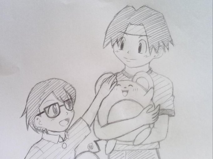 ああぁぁぁ………ユリーカ間に合わなかったorz あとで完成させてあげよう(T_T) 久しぶりにケンジとマサト描けて楽しかった♪ #ポケモントレーナー版深夜の真剣お絵描き60分一本勝負