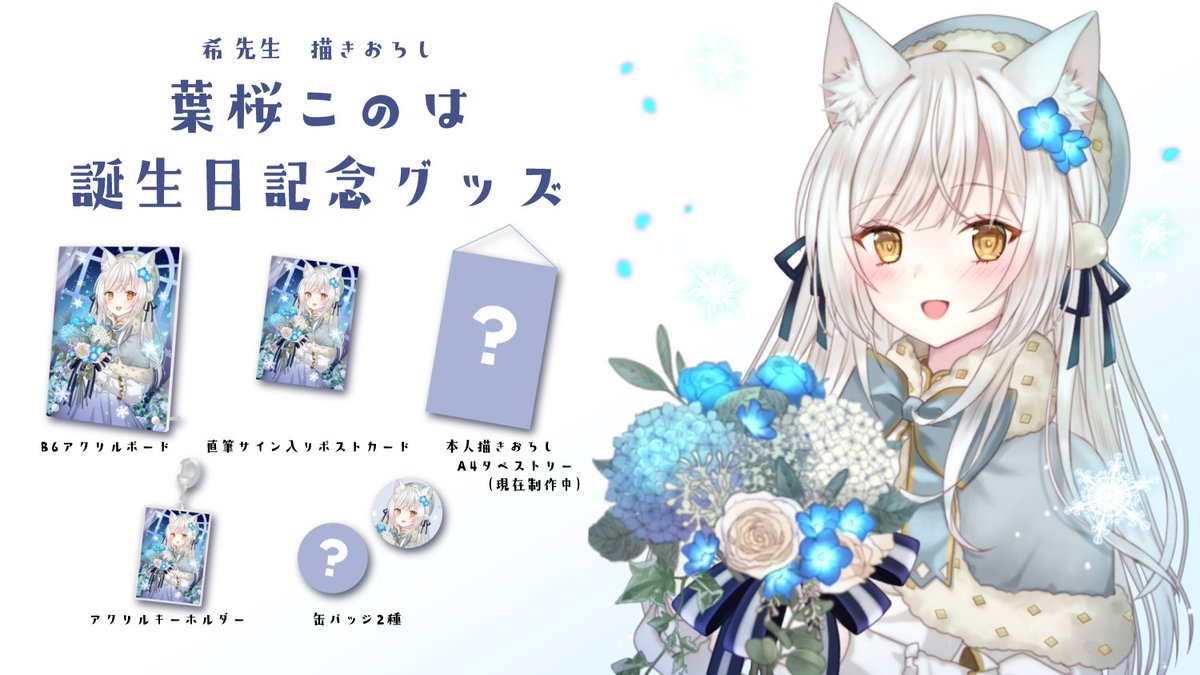 希先生描きおろし 葉桜このは 誕生日記念グッズセット | Sun!Sun!taiyo sunsuntaiyo.booth.pm/items/3689996 #booth_pm 2022年2/28(日)23:00 ~ 3/7(月)23:59までの間、 期間限定で販売いたします。 ※受注生産です。販売期間終了後からの生産ですので、発送が遅くなります。