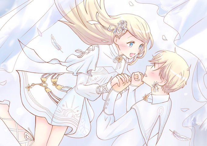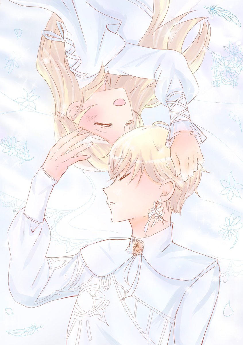 #今月描いた絵を晒そう 天使×2と桜と💛🧡