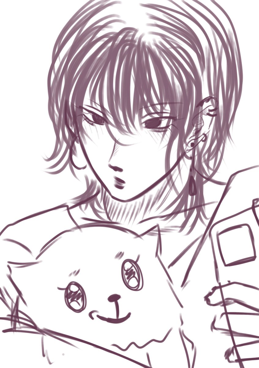 0 1 構図ラフ→ラフへ 変わりすぎ笑 ぬいぐるみの顔気に入ってるww #イラスト 22/10/28 08:06