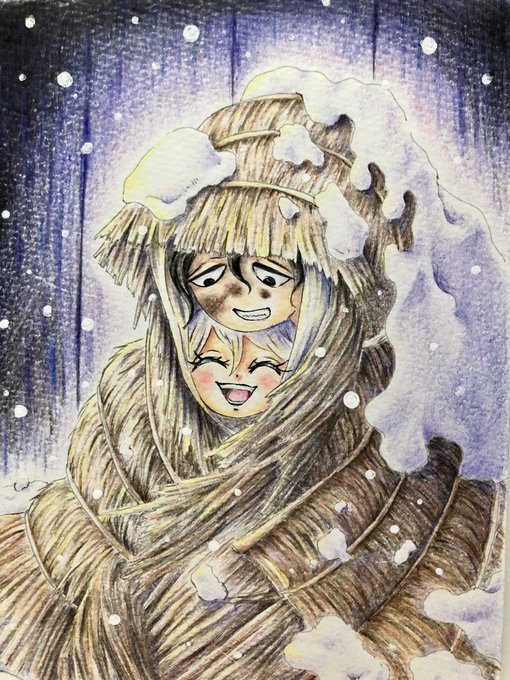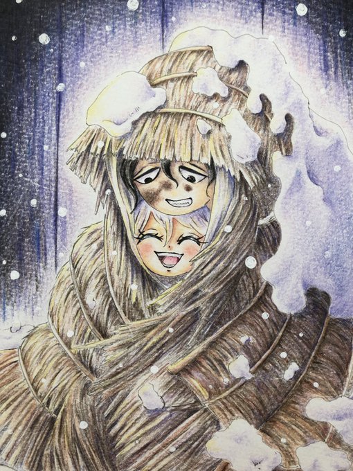 19 163 #今月描いた絵を晒そう アナログはこの2つ(塗り絵のぞく) 藁と雪はなかなか上手に描けてるな、と見返して思っちゃいました😆どちらもお気に入りです! 22/02/28 16:58