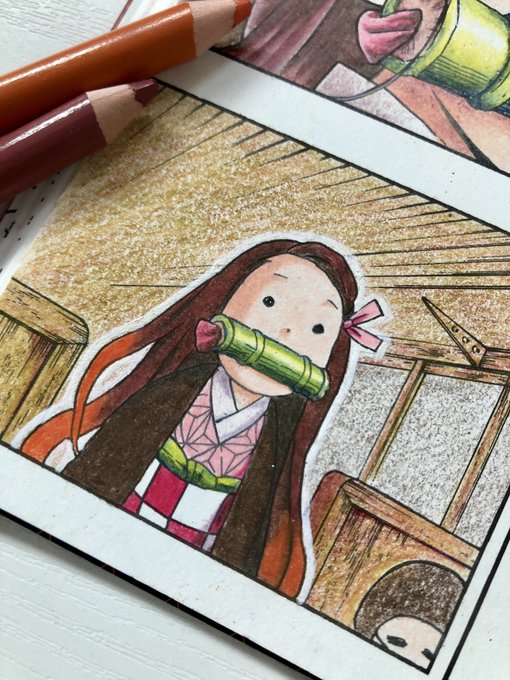 14 200 #kmt兄弟姉妹の絆 うめちゃんを笑顔にしてみた模写アレンジ(再掲)です #色鉛筆 22/04/13 07:07