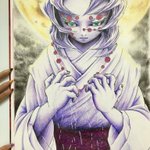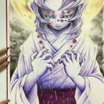 14 149 昨日は中秋の名月🌕 鬼滅の刃塗絵帳-紅-P29 もともと背景は白でしたが月を描いてみました #ぬりえ #色鉛筆 22/09/11 13:56