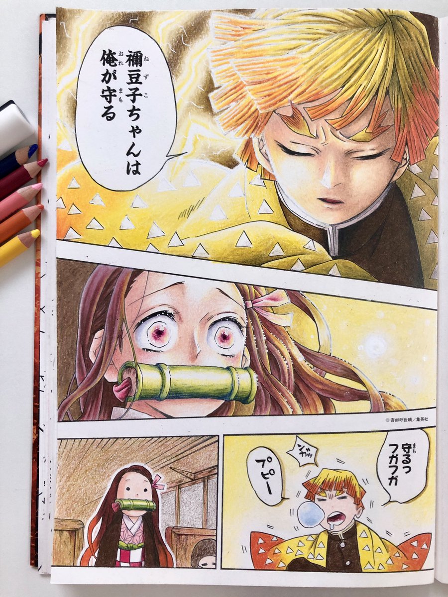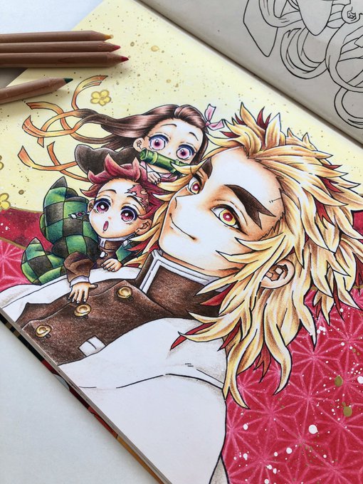 鬼滅の刃塗絵帳-橙- P17を塗りました #ぬりえ #色鉛筆