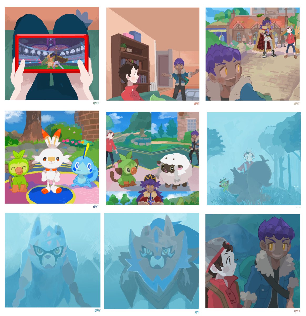 57 250 1〜8 並べたくてこのサイズの絵を描いていたので、ハロンタウン出発までまとめました🌼 #剣盾メモリアル 23/08/13 09:49