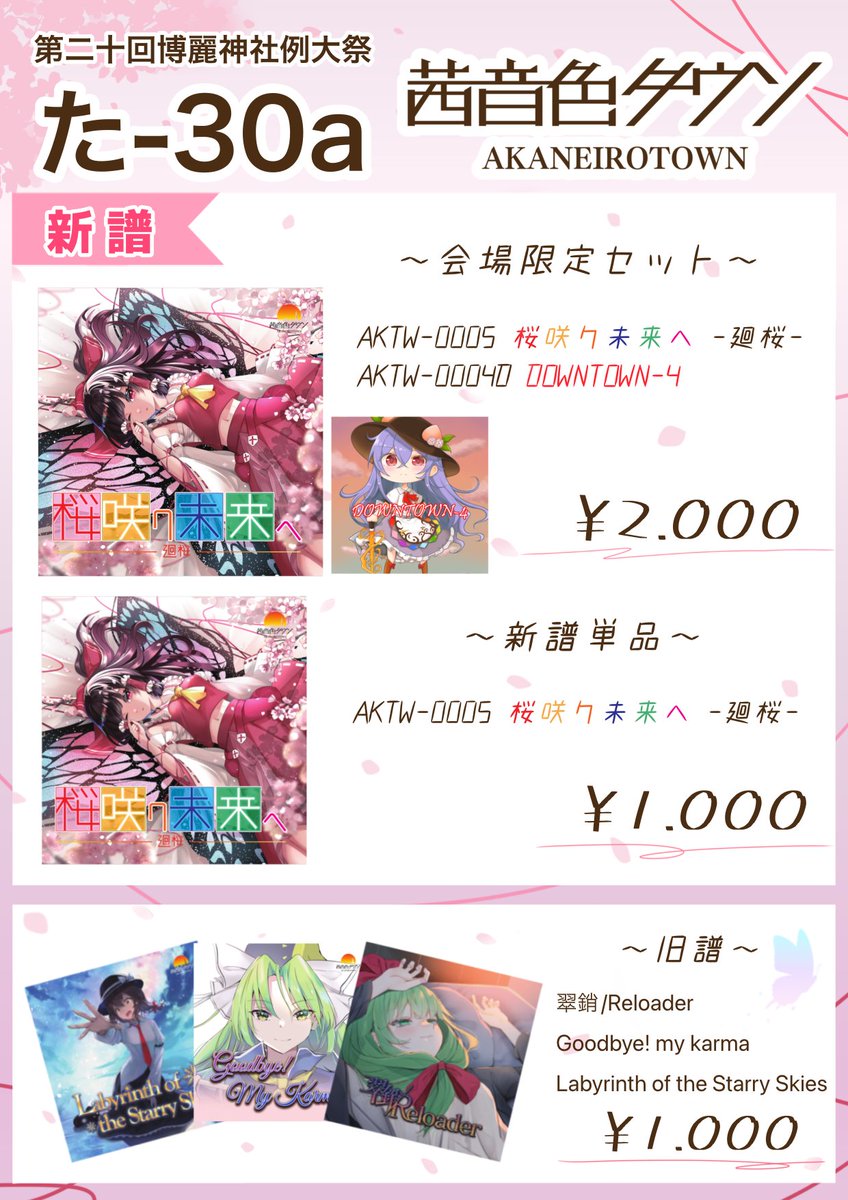 例大祭のお品書きになります! 茜音色タウン た-30aです。