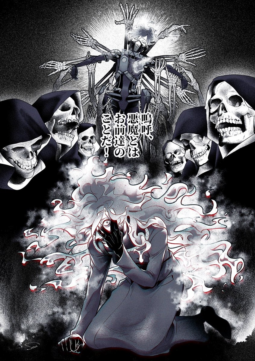 フォロワー合同誌に寄稿した門弥の合作カラーイラストです💁♀️ ワイは門を描きました✌️ これは没案のビックリマンverです