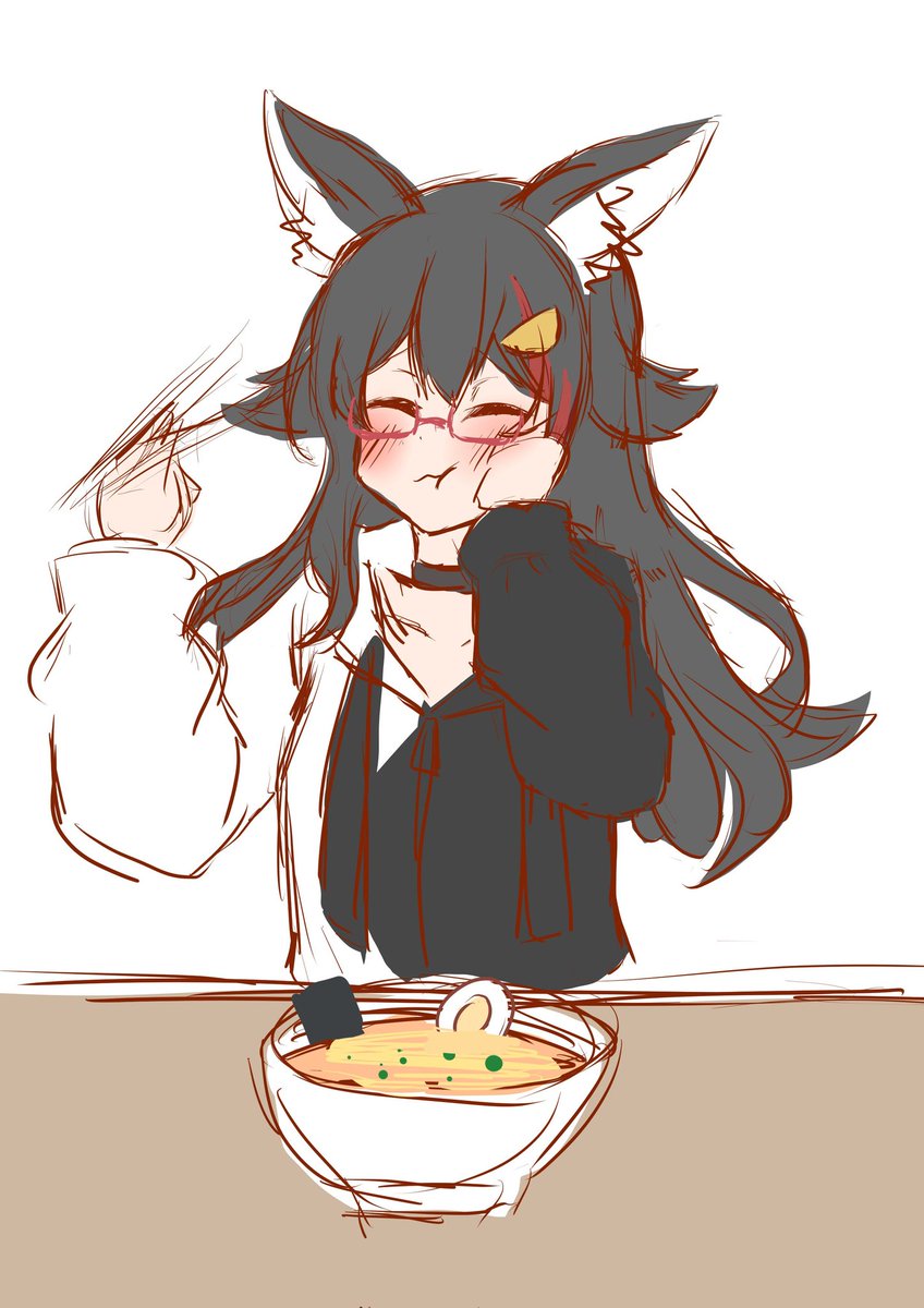 今日の朝みおを見ながら描いたラーメンを頬張るミオちゃん #みおーん絵