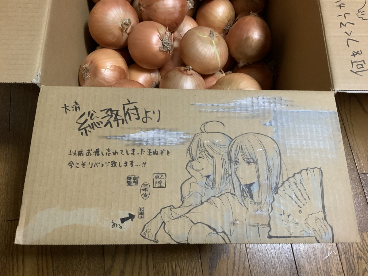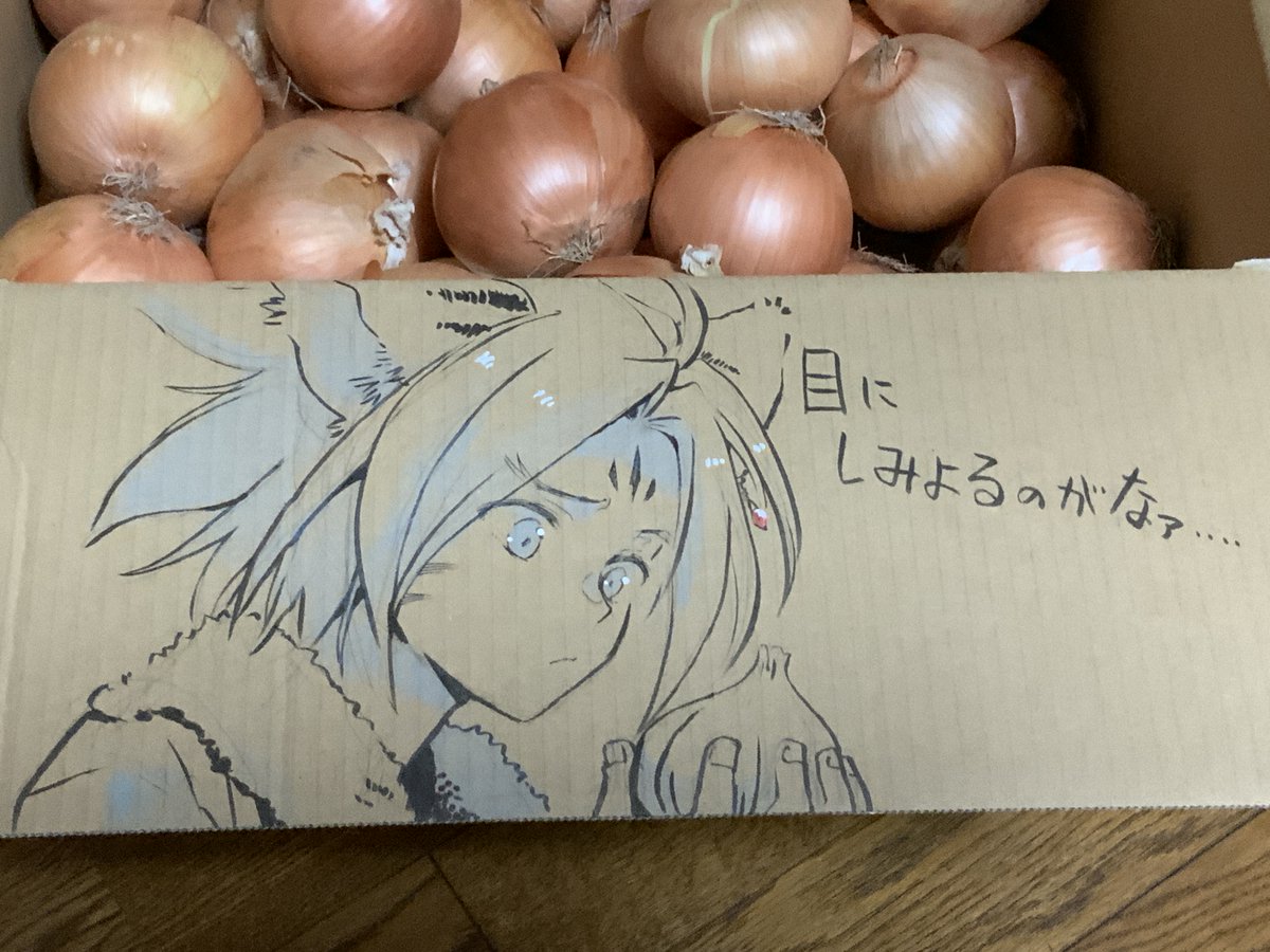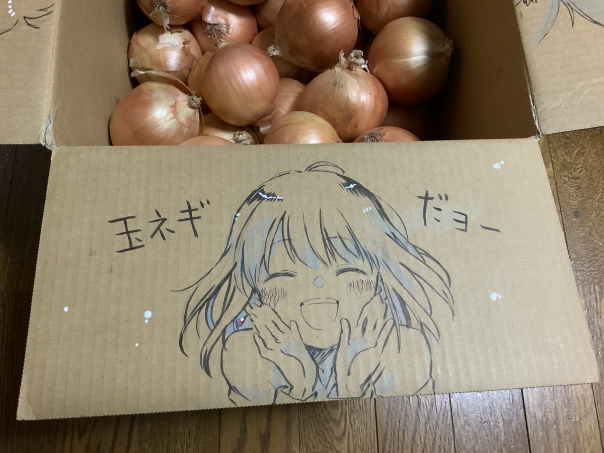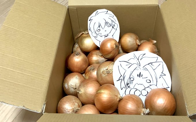 原田さんから玉ねぎ届きました!引用RTの落書きが入ってないかと血眼になって探し「くそっ…入ってねーわ…」と落とした目にコレが飛び込んできて、一瞬何が起こったのか理解不能デシタ。なお玉ねぎ8kg入ってた。子供らが傷まないうちに食べ切れるか心配してる^q^ twitter.com/kooky_armeniac…