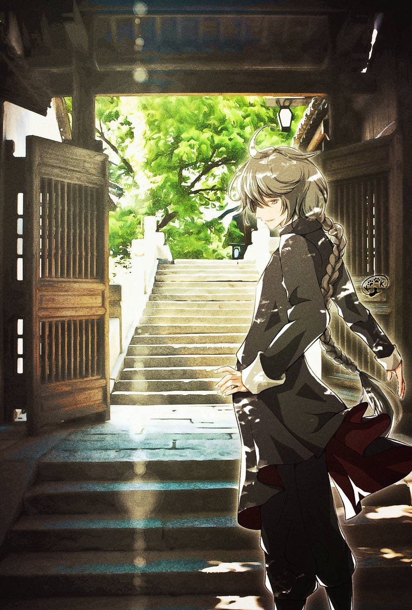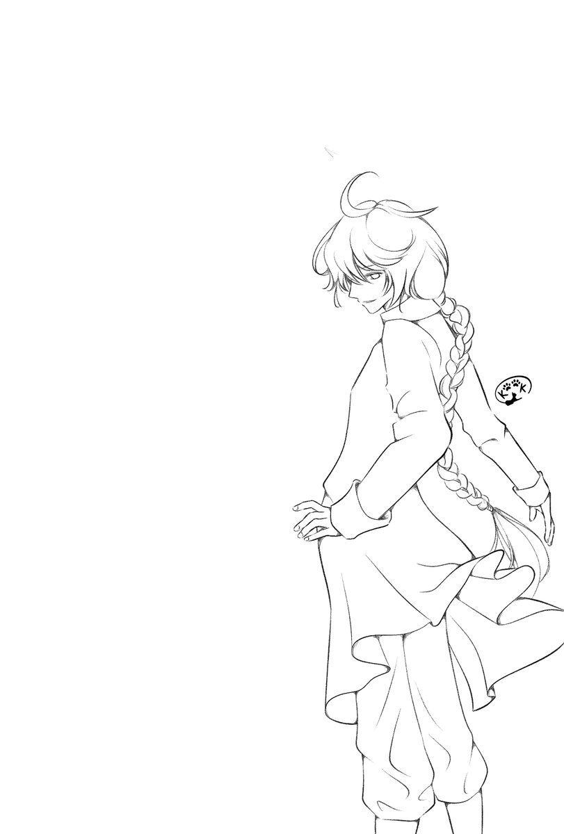 #皆さんラフと完成絵を見せてください #皆さん線画と塗った後を見せてください ズボンのシワがしっくりこなくて影で塗りつぶしてたのが線画でバレてしまう^q^ 背景に使った無料写真↓ pxhere.com/ja/photo/500022