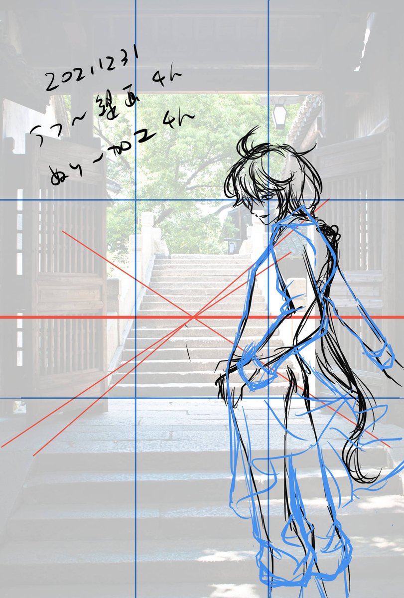 #皆さんラフと完成絵を見せてください #皆さん線画と塗った後を見せてください ラフ、かなり…酷い…。見栄えのいいラフって、なんか、ちょっと、憧れる。 4枚目は背景に使った無料写真↓ pixabay.com/ja/photos/%E6%…