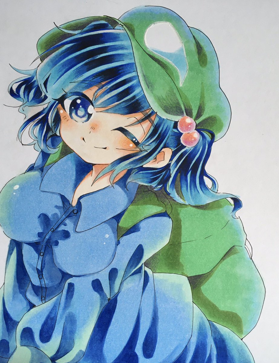 にとりさん。めちゃめちゃ青。 描いていて涼しい気分になりました🎐