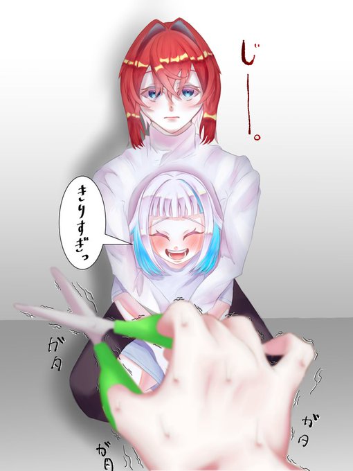 リゼ様幼少期が前髪切られすぎたのを、めっちゃ笑うリゼ様と後ろから若干圧をかけるアンジュさん。 #絵ンジュ #ヘル絵スタ