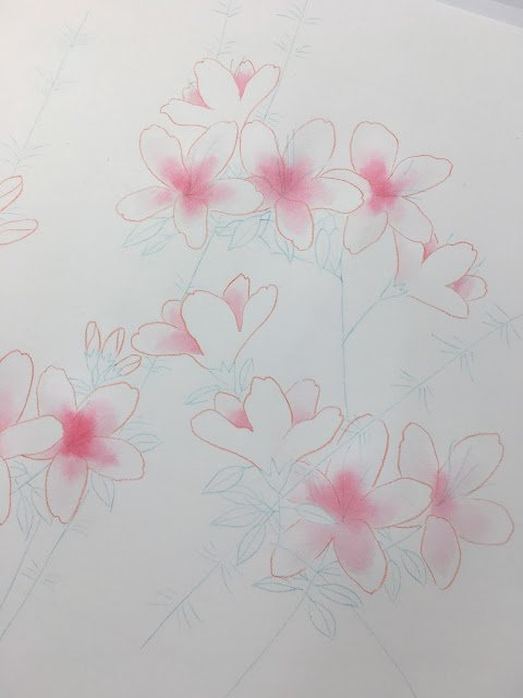 カバーイラストのバックに使う花は別紙に描いてます。今回はピンクにしました。出来上がりが楽しみです。