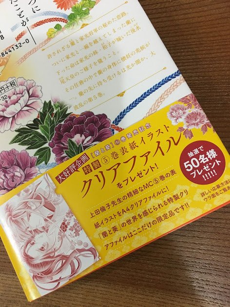 4 29 「蘭と葵」5巻発売記念に特製クリアファイルが50名様にプレゼント企画もあります!コミックスの帯についている応募券を貼ってご応募ください!!5巻のカバーイラストを使用してるとても素敵なクリアファイルです! 18/11/22 09:37