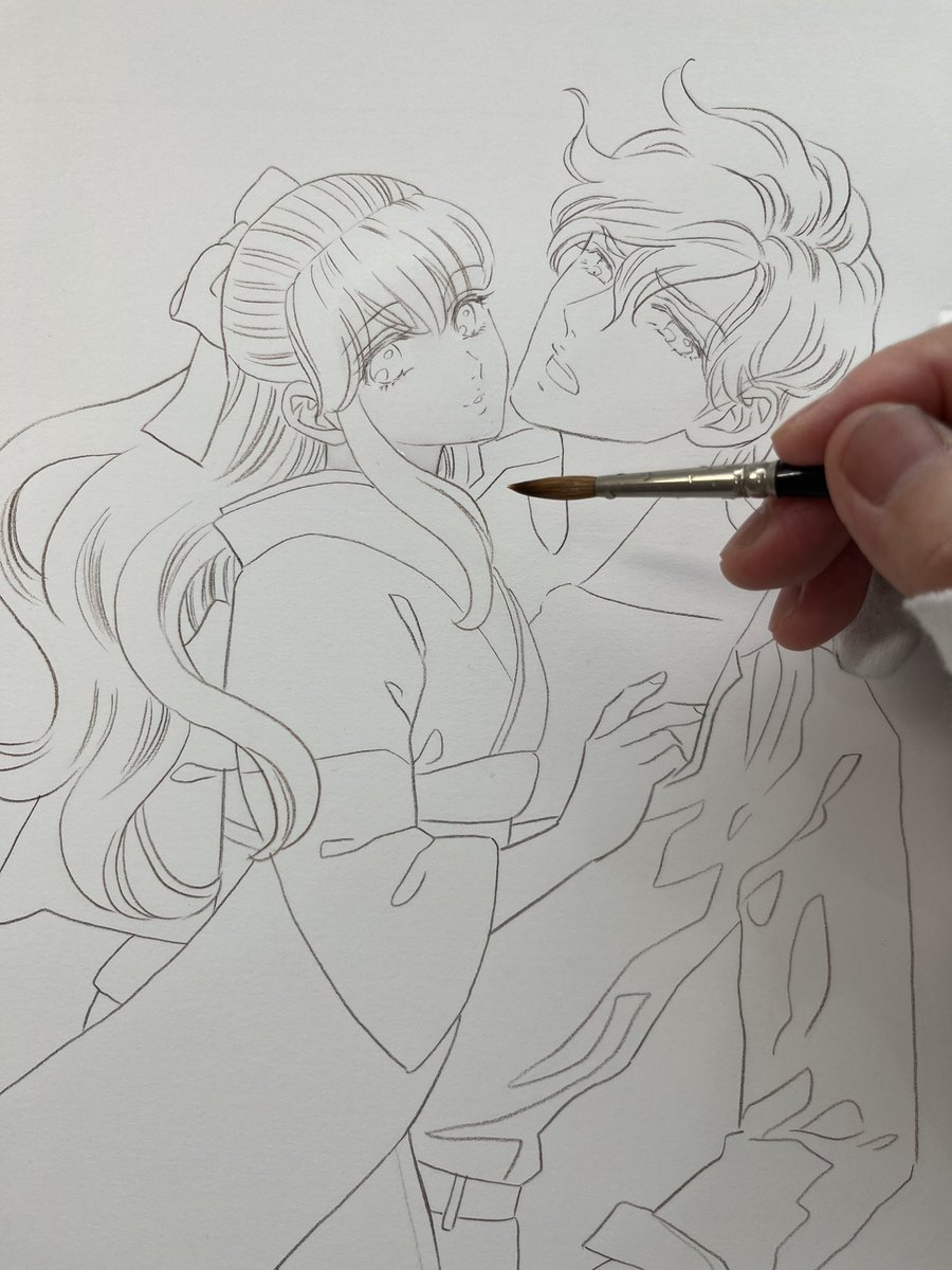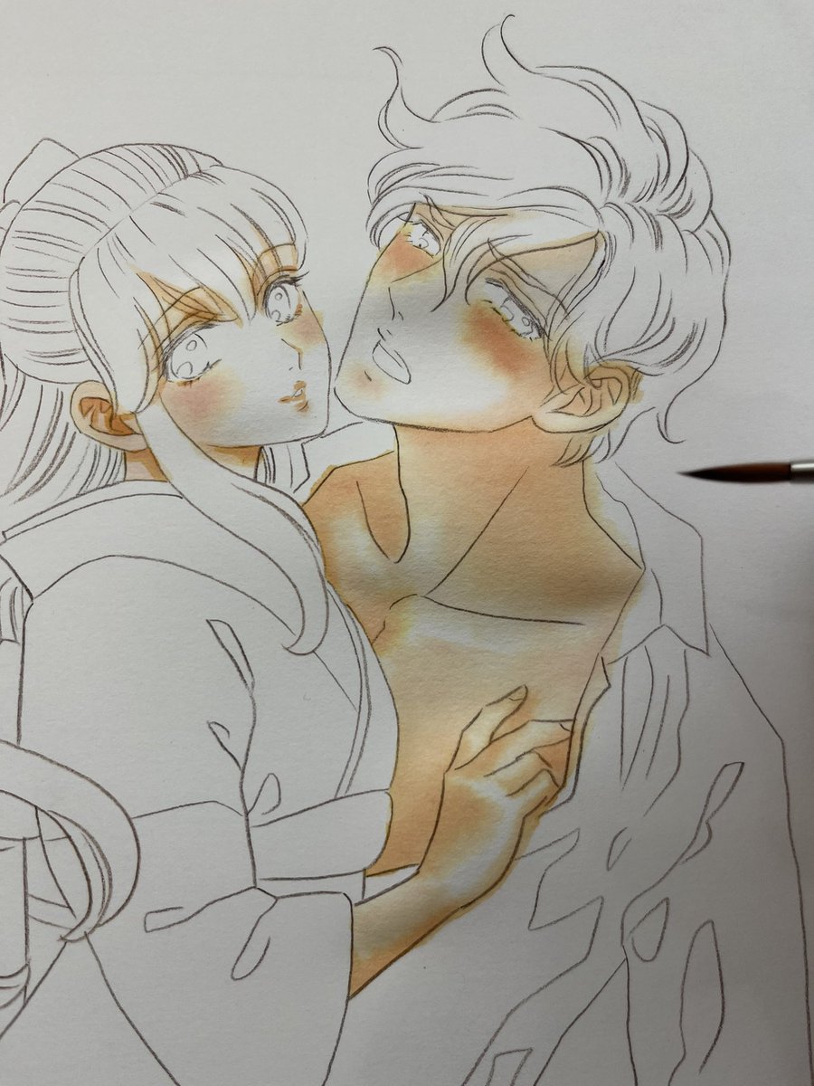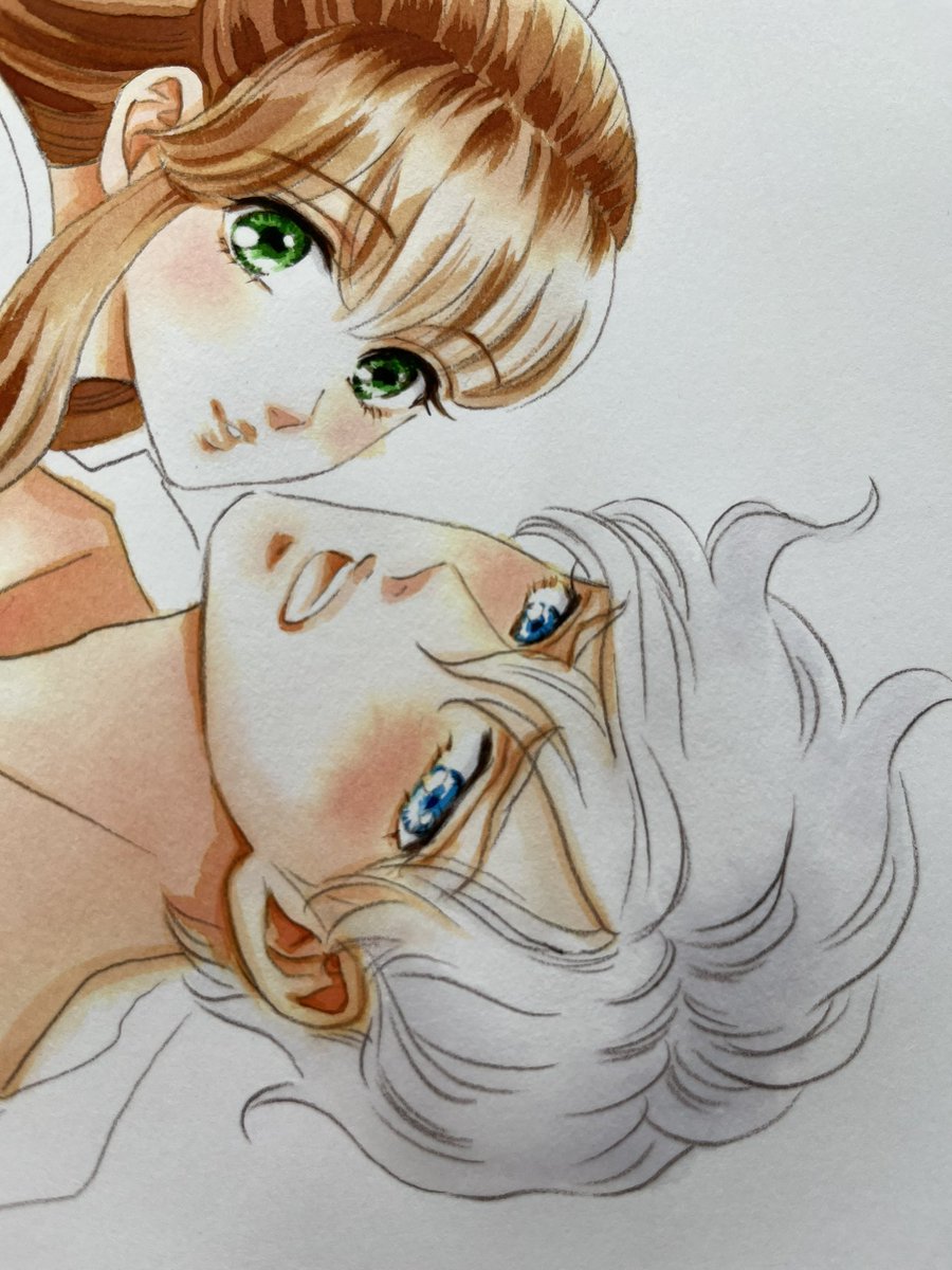 @higumayamakei @akiyamakaori 熱き漫画家山田圭子先生@higumayamakeiからもバトン受け取りました!画像フォルダにあまりカラー絵がないもので、ラフと清書絵を出してみます。#絵描き繋がれ