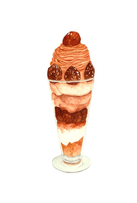 マロンパフェ描きました✨ #透明水彩 #食べ物イラスト #パフェ #マロンパフェ #イラスト