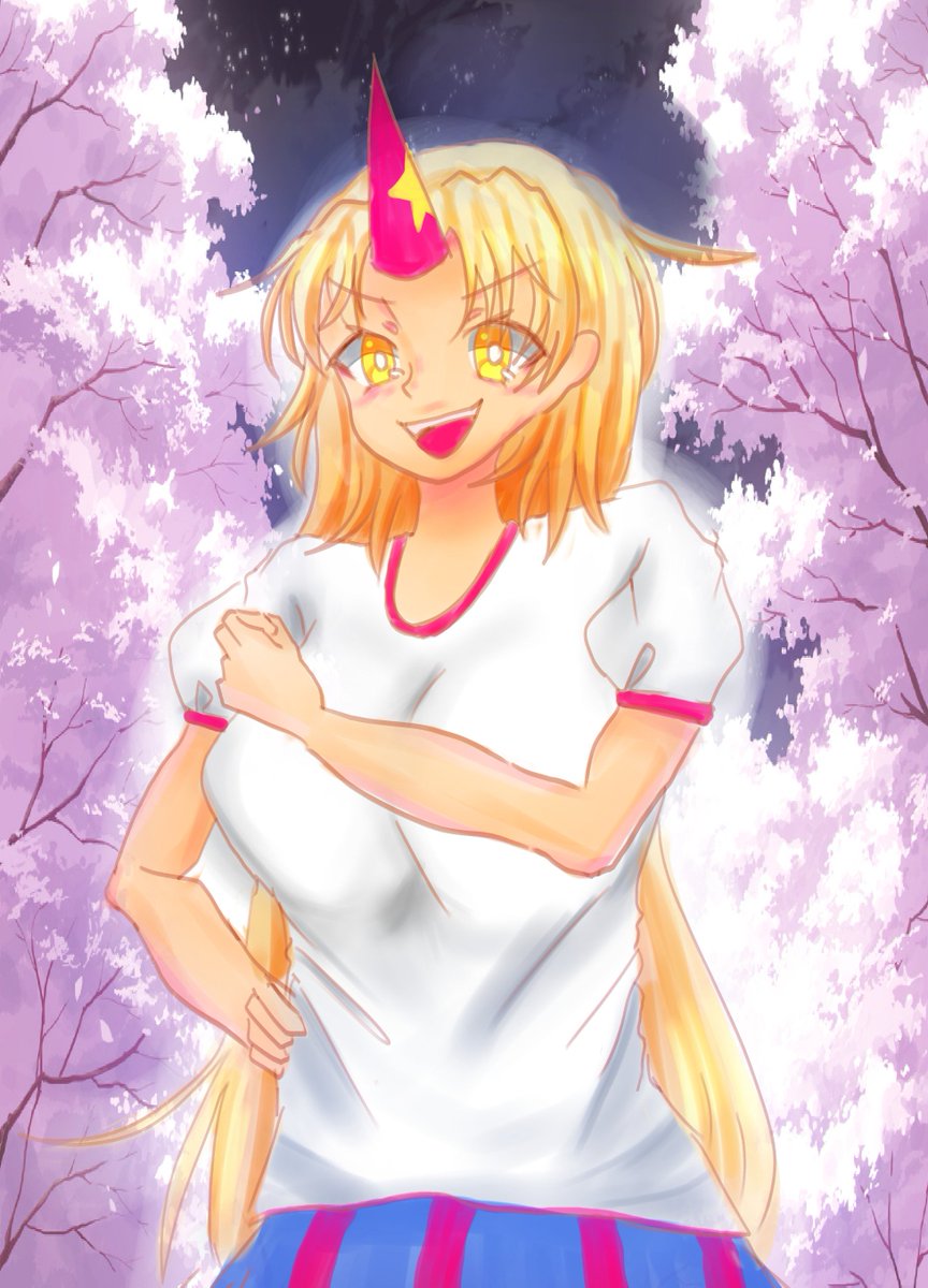 飯を食していたら遅刻した… 勇儀姐さんの凛々しくて力強い感じがすき +10分 #深夜の真剣お絵描き60分一本勝負