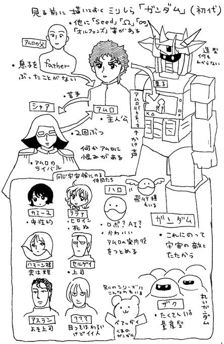 今度見てみようとしているので今のうちに描いておくミリしら(というか今までの人生にて得た断片知識で勝手に脳内構築された)機動戦士ガンダムの図です