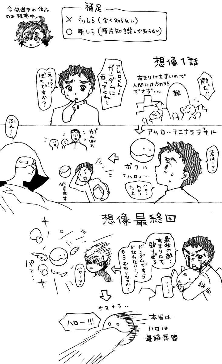 最後に 自分の貧困な想像力をフル回転させて考えたガンダム1話と 断片知識発生要因のうちのひとつの番組についてのよくわからない記憶を書き残して 1話を見ます。😼