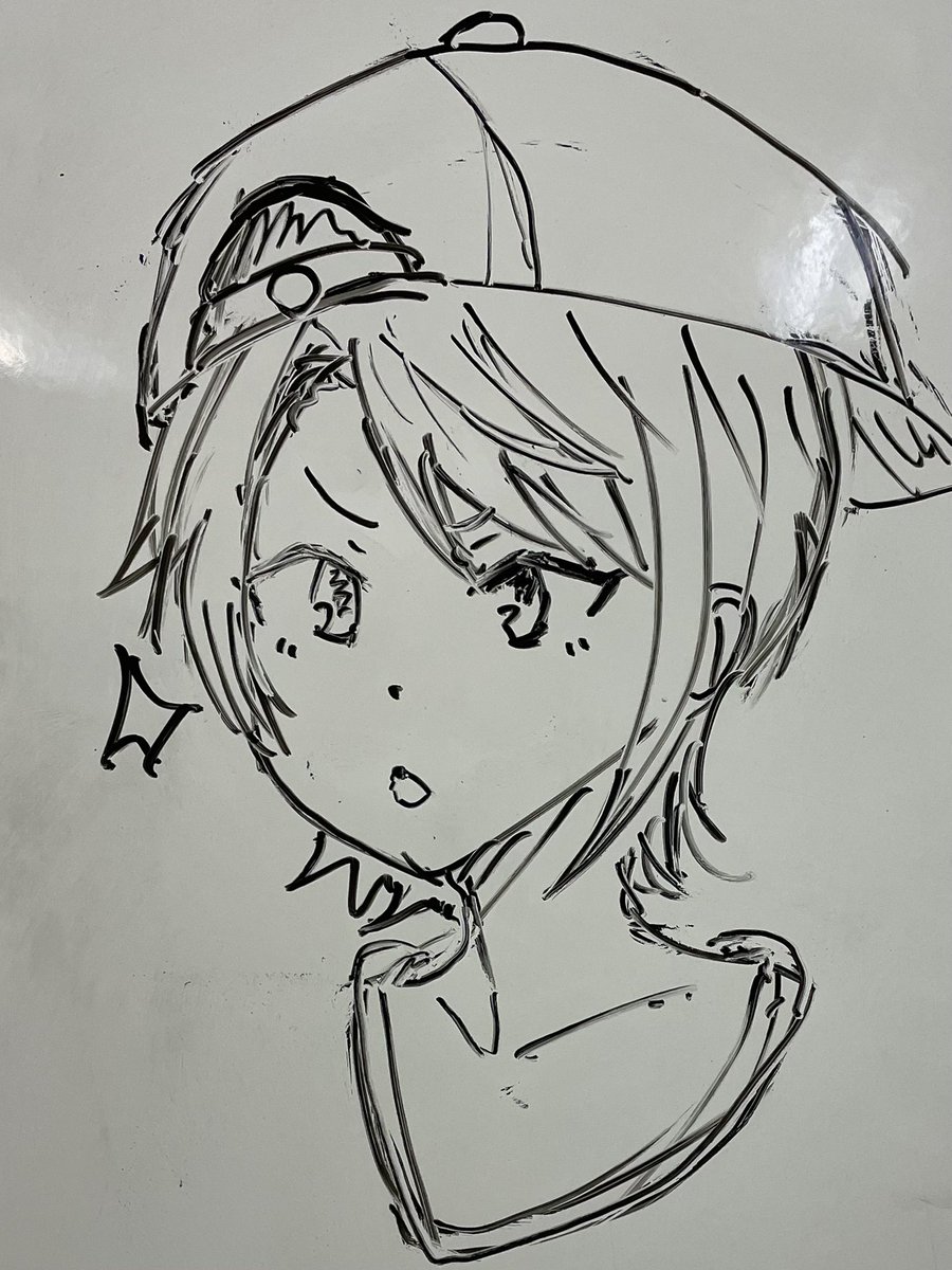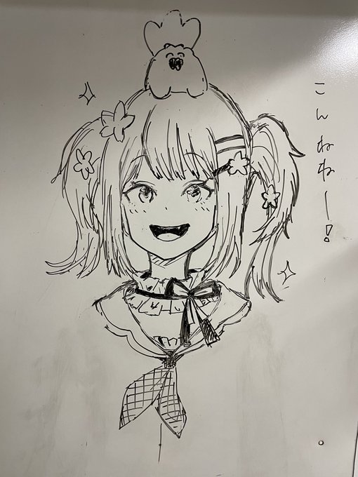 最近、仕事の休憩時間中に、ホワイトボードでホロライブのイラスト描くのにハマってる。 #プロテインザスバル