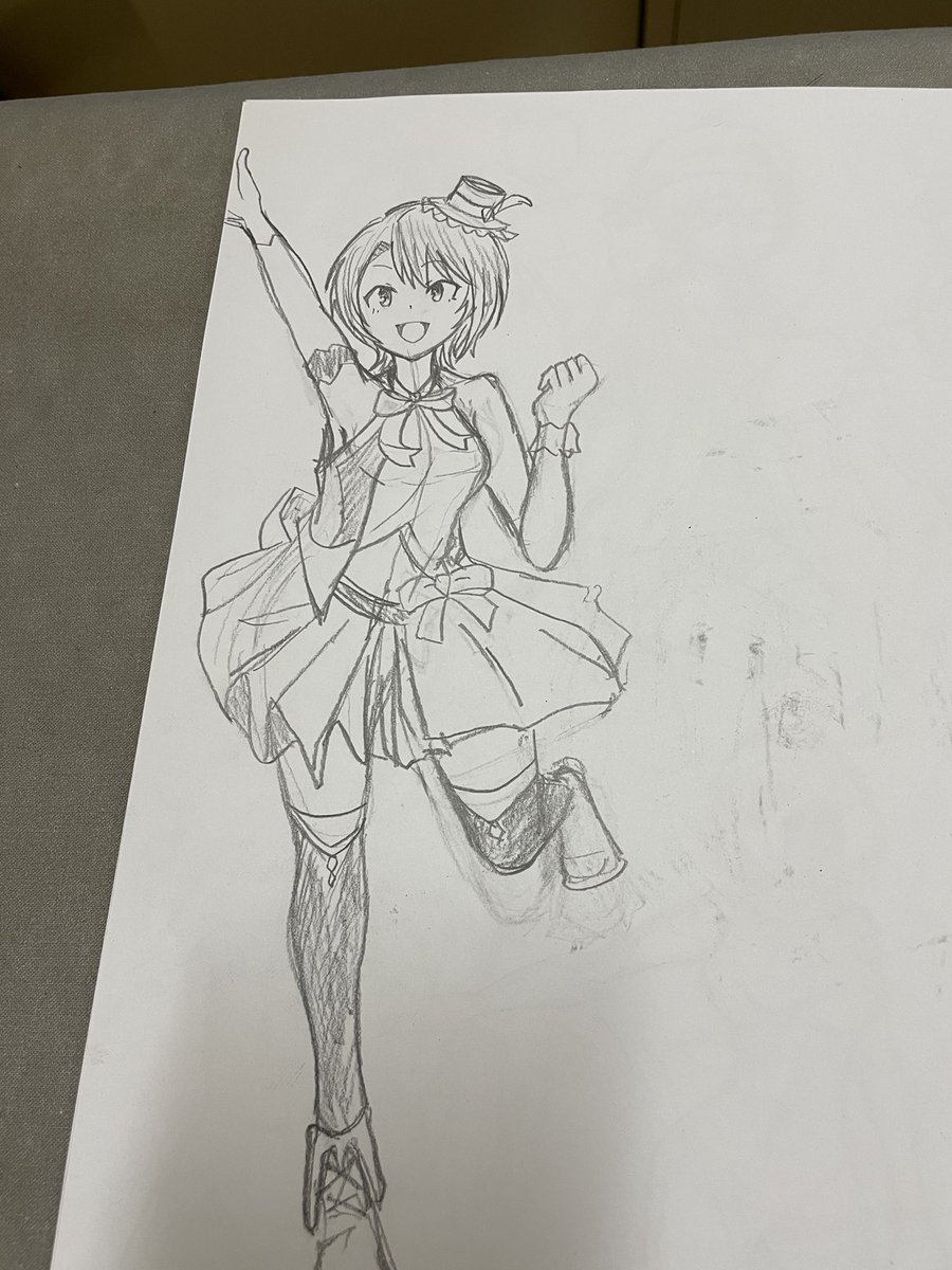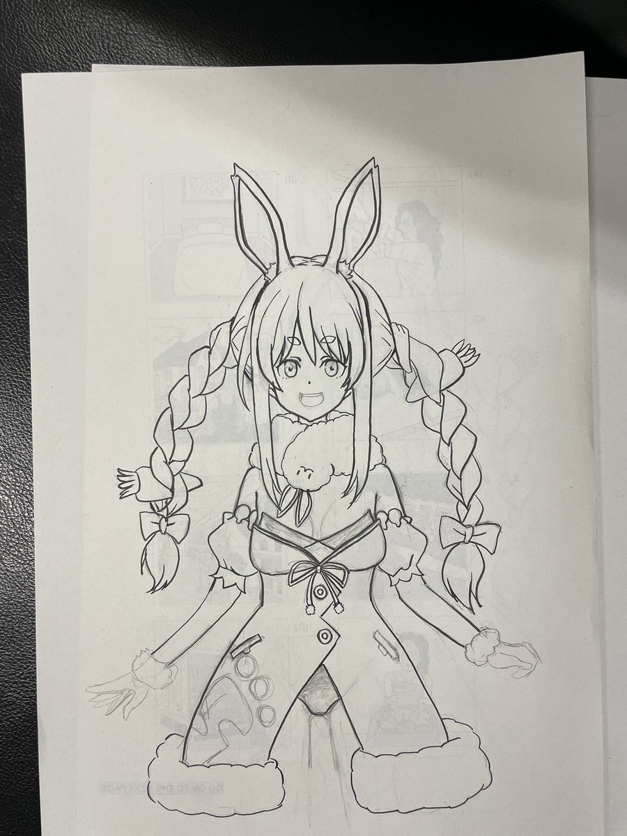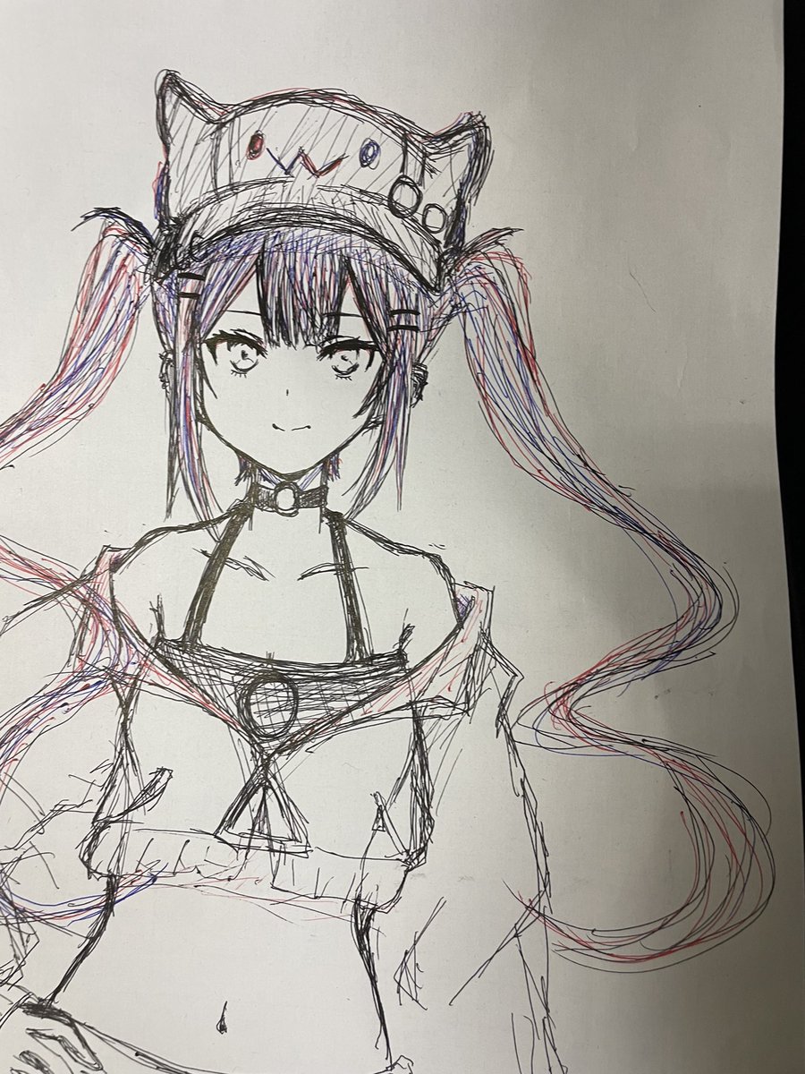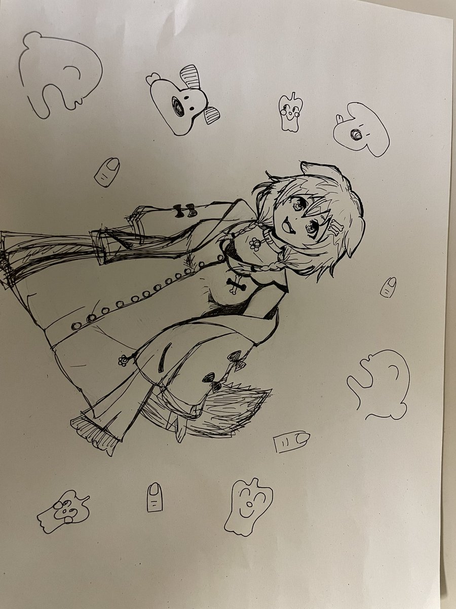 プリント裏の落書き 今回は無駄な線を増やさないってのを意識しながらペン入れまで。 ペンを入れるときにこの線必要?みたいなの多すぎて、まだ線が迷ってるんだなぁってなる。 イラスト描き始めて4ヶ月。 ペン入れを上手くできるよになったらデシダルに移行します。 #ぺこらーと
