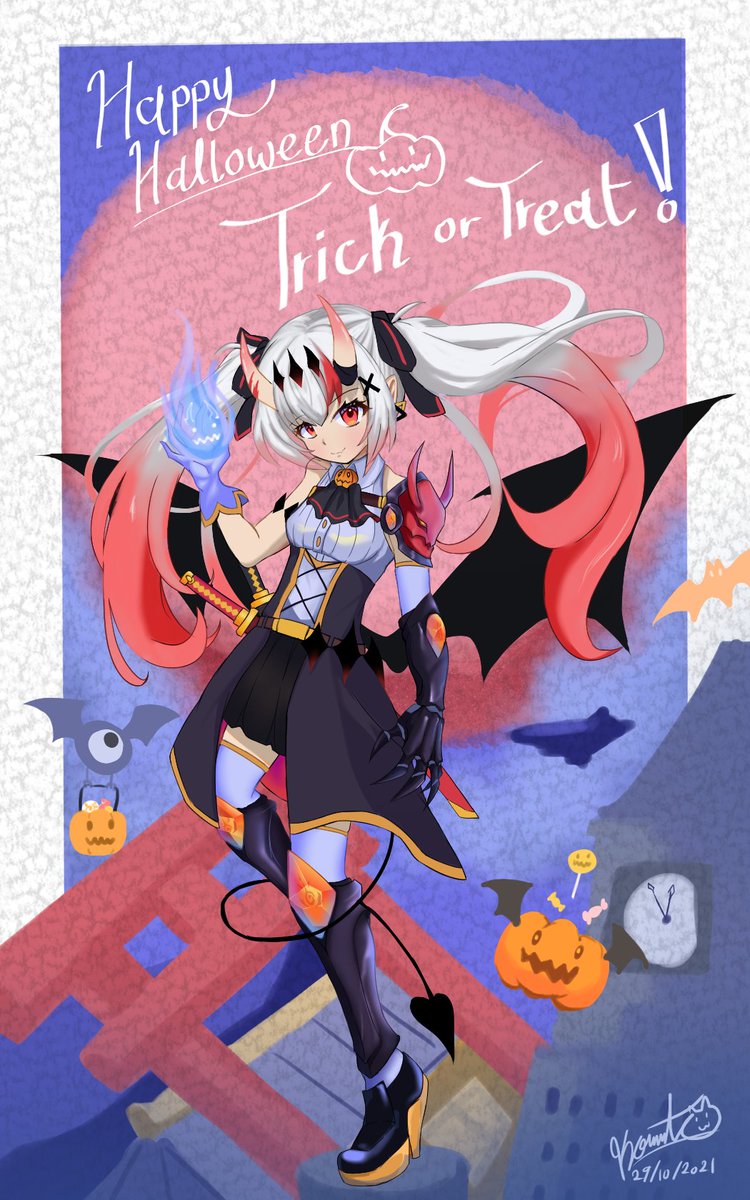 34 104 it's still 2 days early but, Happy Halloween! #百鬼絵巻 21/10/29 02:31