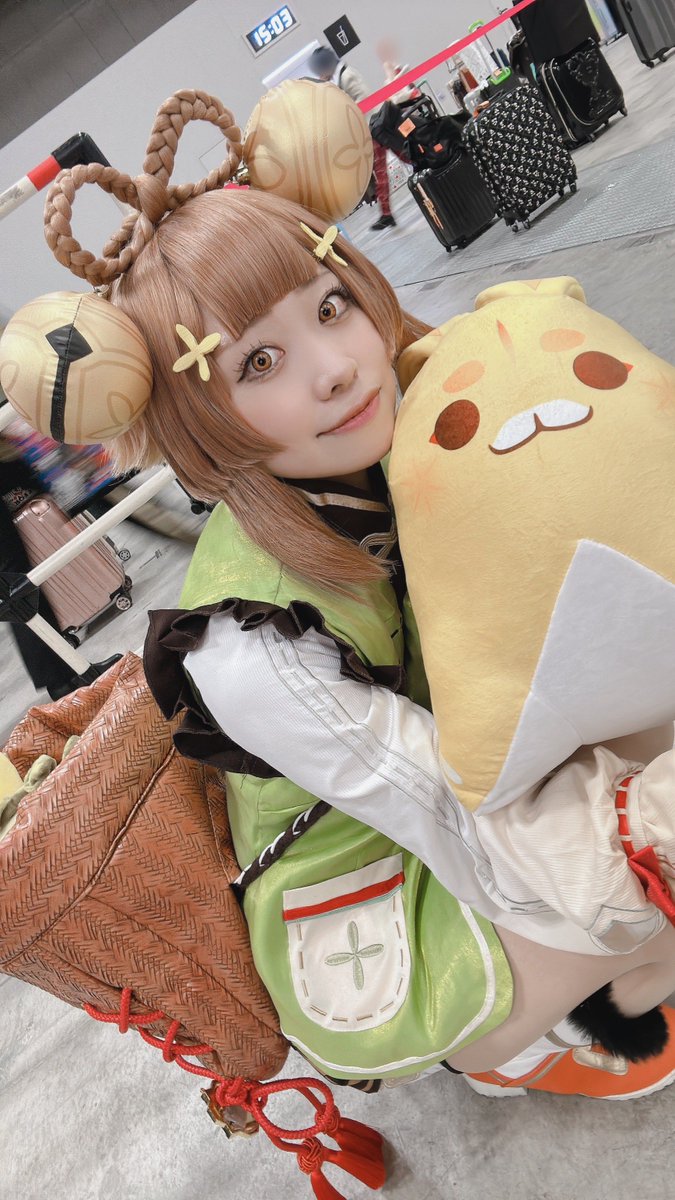 スパコミ初日いてきた! 初だしヨォーヨちゃんでした!月桂も一緒!! 会うの初めましてのあめちゃんの可愛い香菱と一緒でした〜♡めちゃくちゃフレンドリーに話せてすごい楽しかった😂 もう人凄すぎてフォロワーさんあんま会えなかったの悔しすぎる〜!