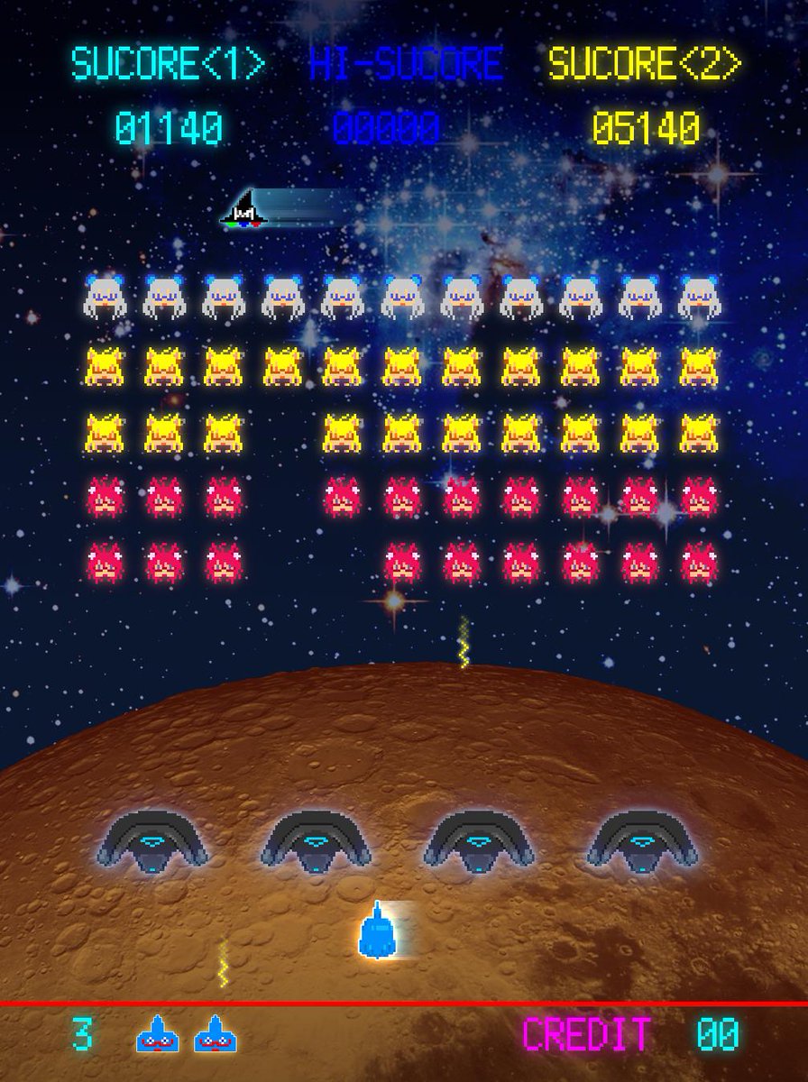 1978年、タイトー「スペースインベーダー」のパロディ、ファンアート(不敬)です。祝1周年。 #らなあーと #ゆうなーと #夏乃ユウキ #ぱふぇあーと #ばもきゃ(?)