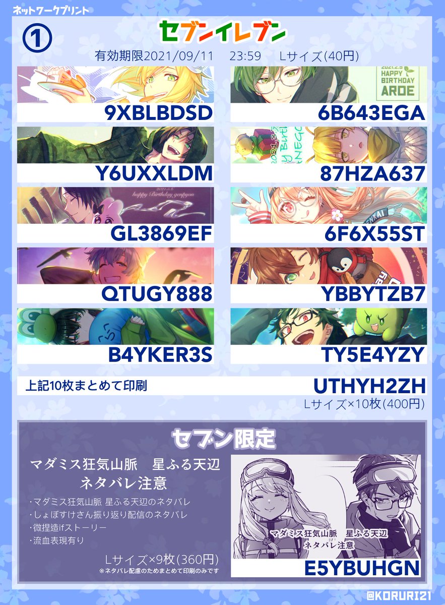 70 272 ネットワークプリント第3弾登録しました🎉 コンビニに寄った際に是非✨ 期限はセブンで1週間、ファミマ・ローソンで30日間になります。 ※ファミマ・ローソンは狂気山脈と②の数枚入ってません。 21/09/04 16:22