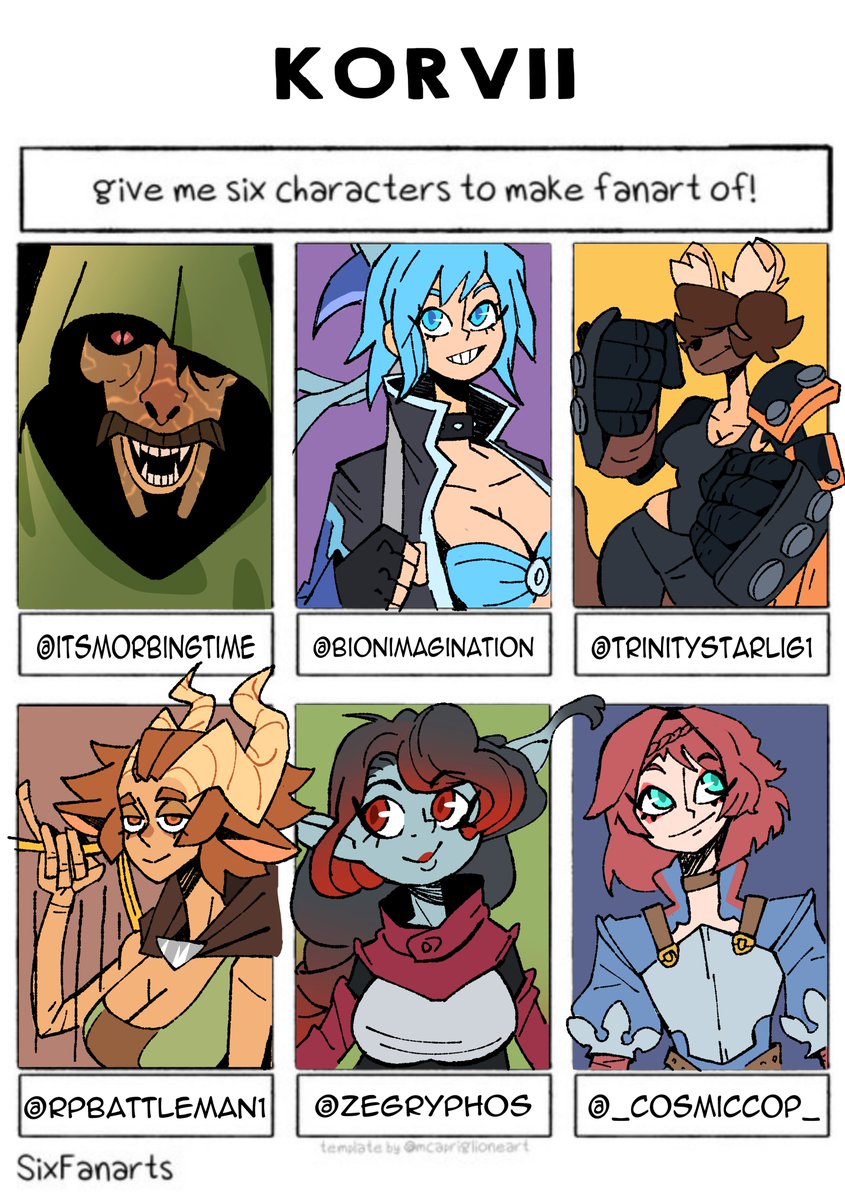 Six Fanart finished, i got a lot of characters so maybe i do a second part @bionimagination @trinitystarlig1 @Rpbattleman1 @Zegryphos @_CosmicCop_ #Commission #commissionsopen #SixFanarts #SixFanartsChallenge