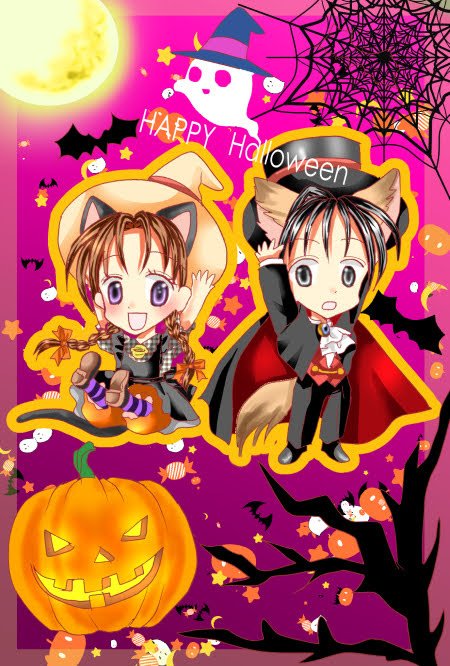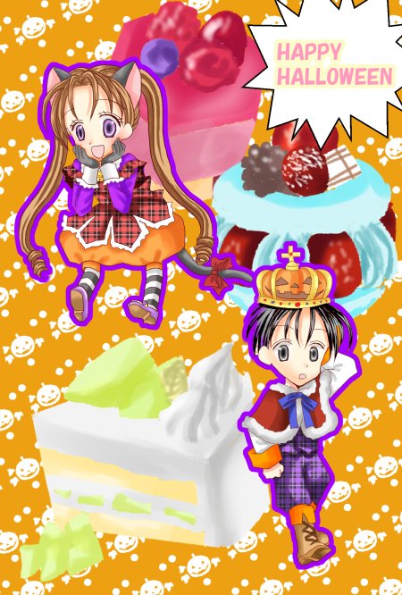 #ハロウィンイラスト展示会2021 …と言いつつ1、2枚目は去年の絵なのですが、この黒猫粉雪と王子聖夜のミニキャラ可愛く描けたのでアクキー作ろうかと思ったんだけど、最初からハガキサイズで描いちゃったのでアクキーにするにはデータが小さいのです😭…と言う事が言いたかっただけ