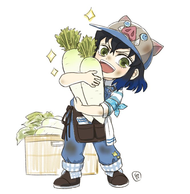 せっかく🐗お帽子なので被ったのも見たかった。 あと、大根抱えさせたかった。