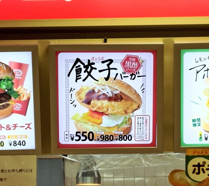 このあいだ見かけたドムドムバーガーの新作。 巨大化して挟みたいという狂気を具現化してくれる俺達のドムドム🥟
