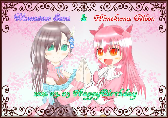 9 31 #桃園せな #せなぁーと #姫熊りぼん #くまの自由帳 せなちゃん、りぼんちゃん誕生日おめでとう! 推しの二人が同じ誕生日ということで一緒に描かせていただきました! 21/03/03 00:00