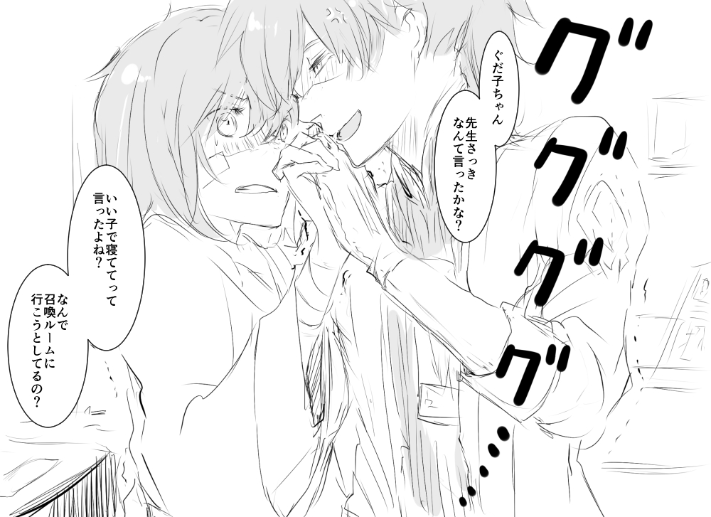 ロマぐだ再掲。ぐだが英語で会話してるのかな、というので描いた妄想漫画と、怪我したぐだ子を治療するドクター漫画。