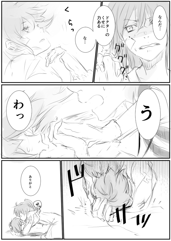 2 12 ロマぐだ再掲。ぐだが英語で会話してるのかな、というので描いた妄想漫画と、怪我したぐだ子を治療するドクター漫画。 22/12/29 21:27
