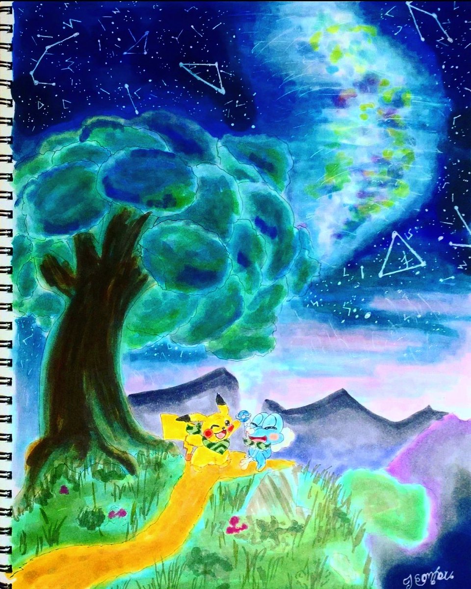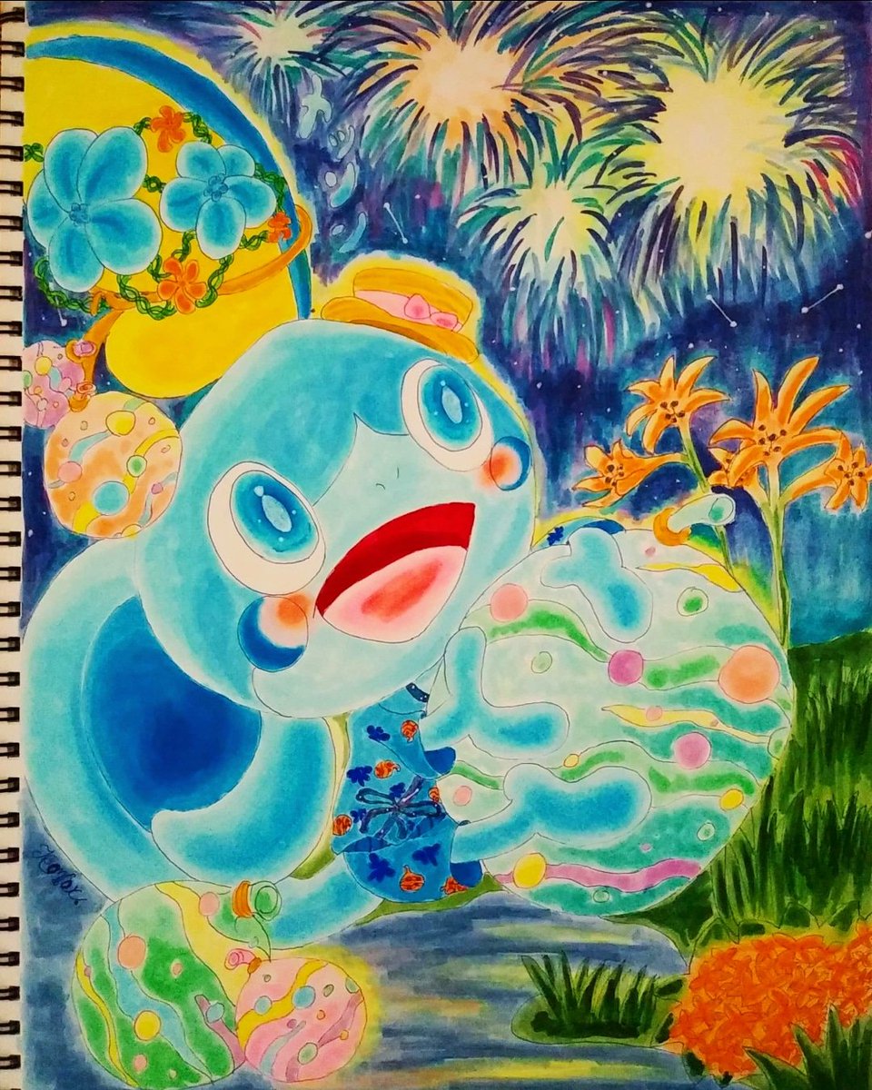 14 58 不思議な夜空 #アシマリの日 #コピック 21/07/28 00:06