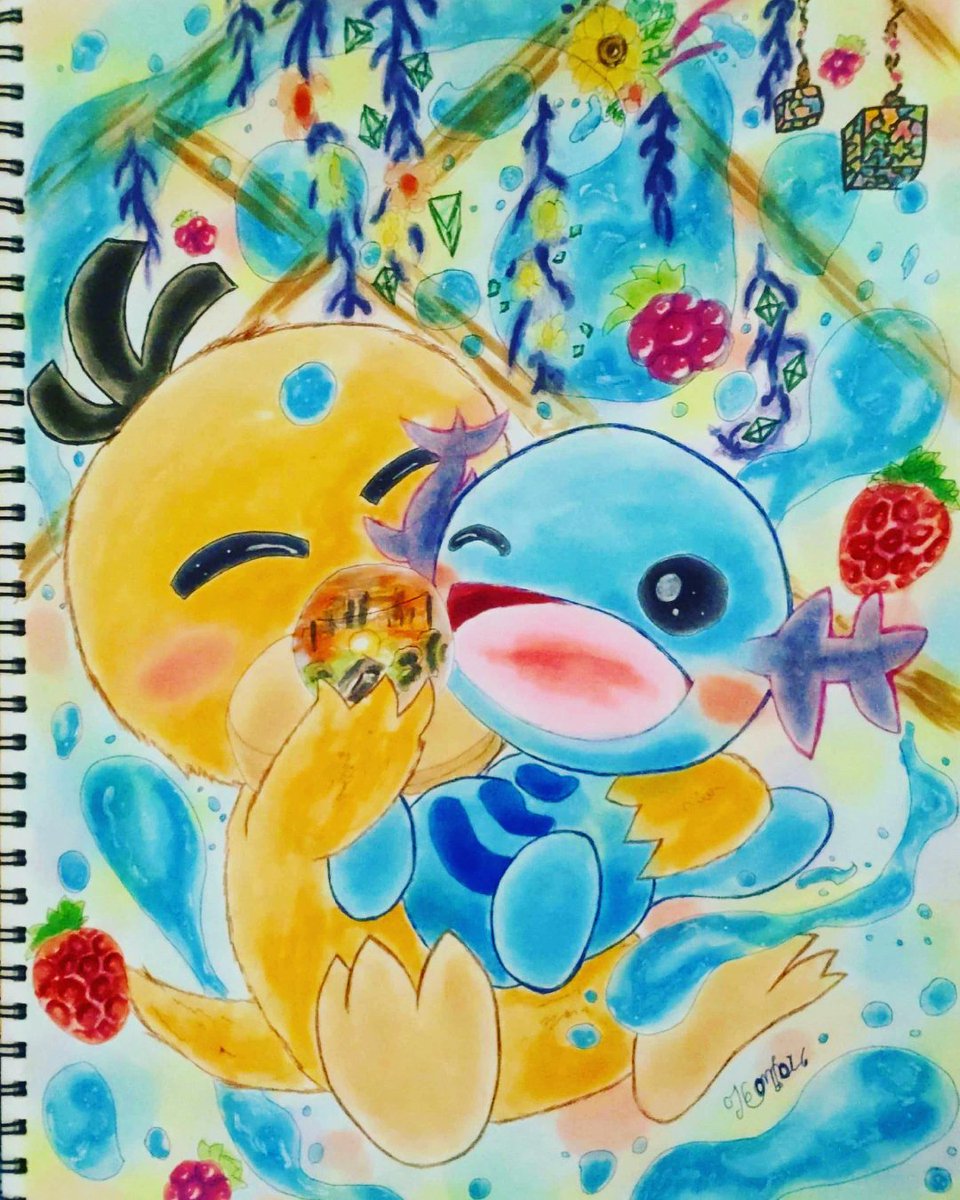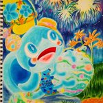 「泡の中にある景色」少し前にクラスメイトに描いてみてと言われていたウパーとコダック。 #コピック