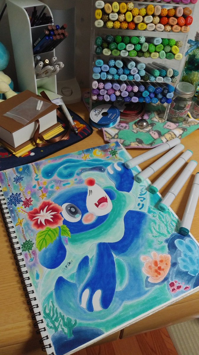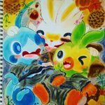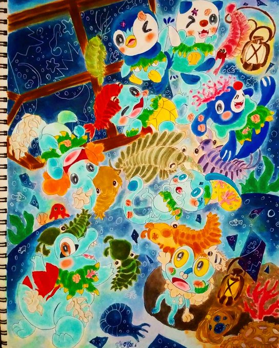 12 43 リハビリで描いた水御三家×カンブリア紀風の海底 #コピック 21/09/02 17:39