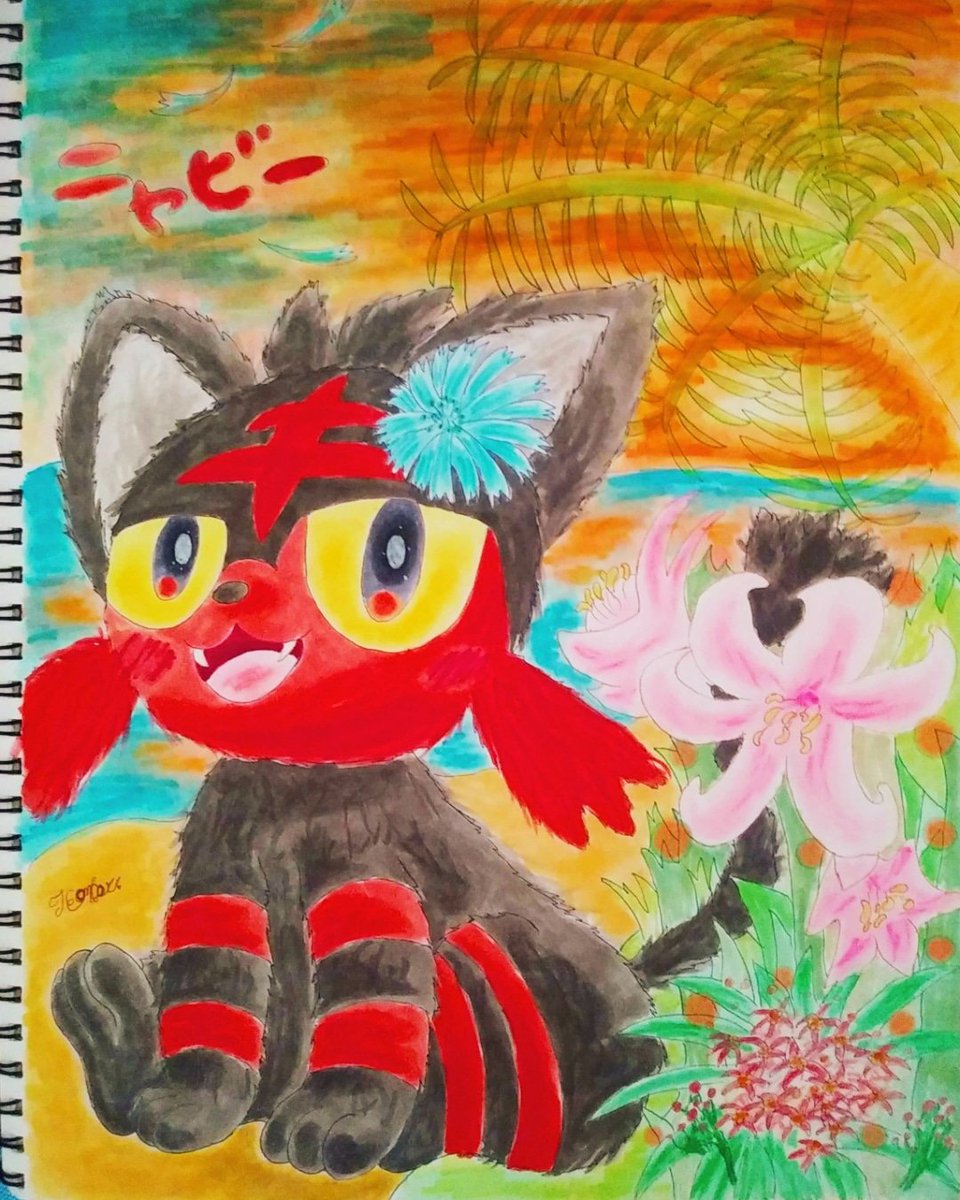 13 61 浜辺の夕日 #ニャビーの日 #コピック 21/07/25 00:30