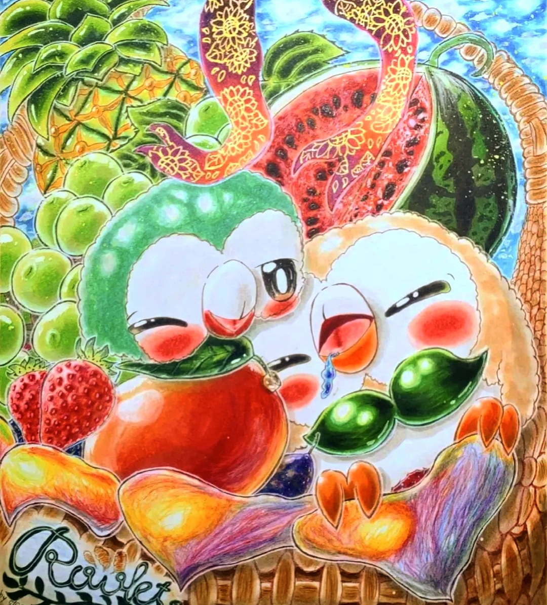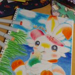 パチリス×フワンテ パッとしない色合いになってしまった、、でも初描きにしては割と良いかな~ #コピック